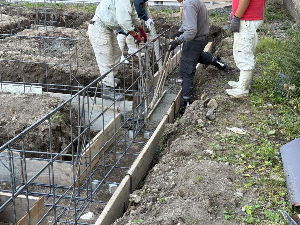 ベースコンクリートは地面を平らにして基礎を安定させることで、