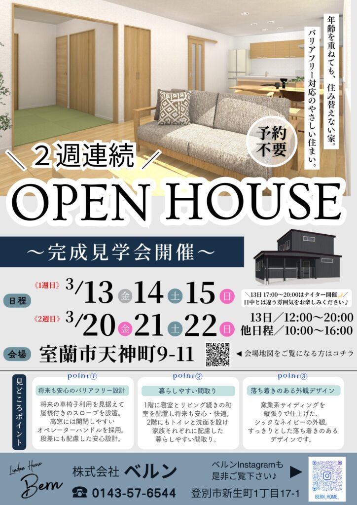 室蘭市天神町にてオープンハウスを開催🏠!