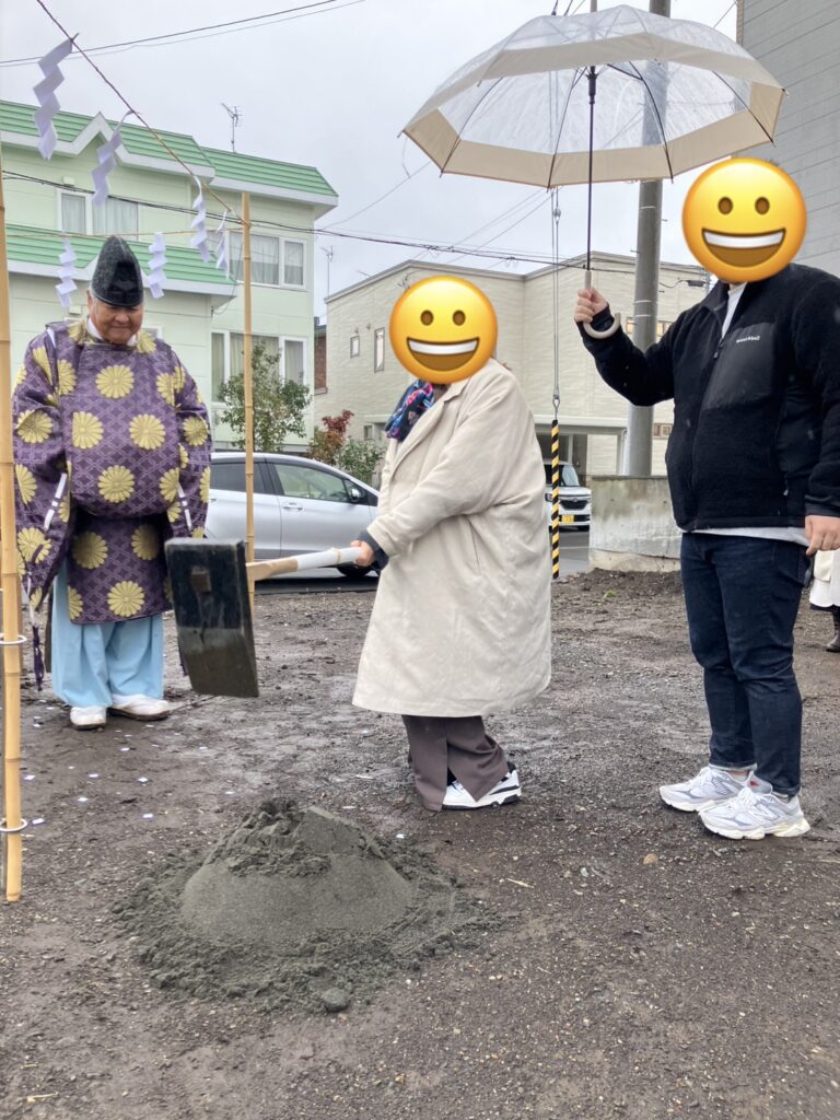 あいにくの天気の中でしたが、無事に地鎮祭を終えることができました。