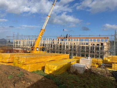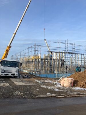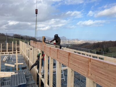 建方がもっと進むと、構造用合板・防水通気シート貼りなど工事が進んで行きます。